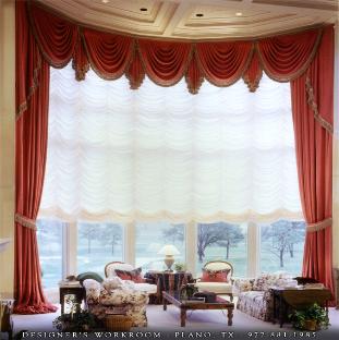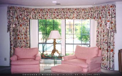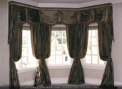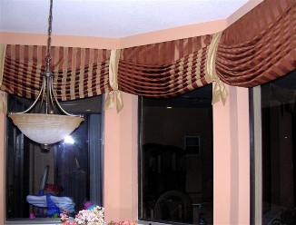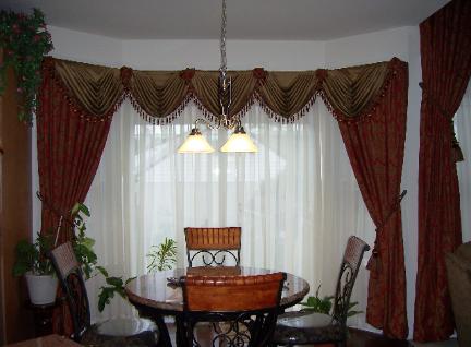 | Custom made draperies, pillows, bedspreads, valances, shades, reupholstery, swags, jabots, romans, austrians, cornices, head boards, |